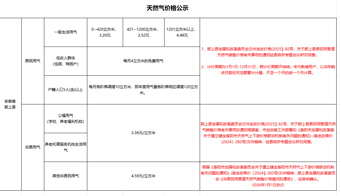 潁上縣發(fā)展和改革委關于我縣城區(qū)天然氣價格有關問題的通知